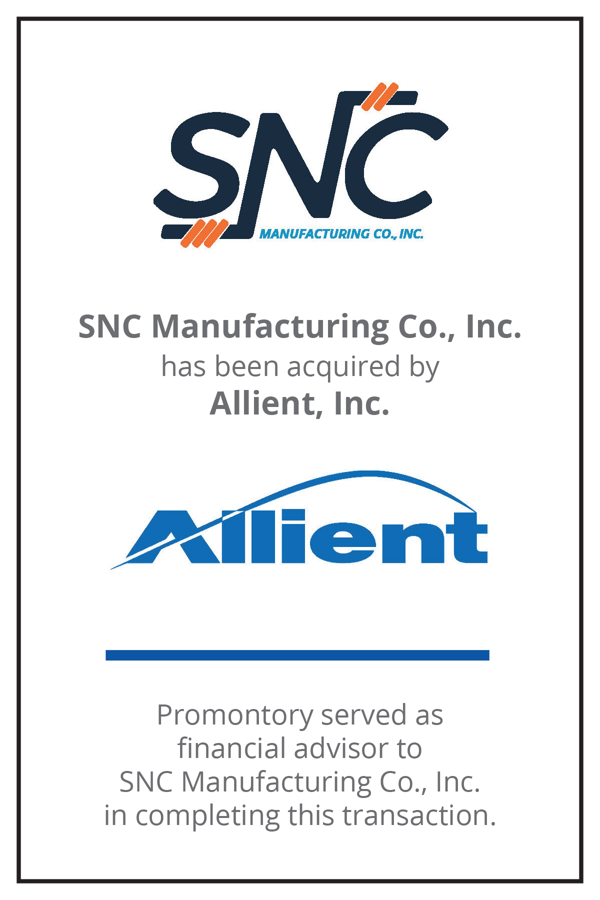 Promontory was engaged to guide the ownership group through a complete sale process designed to achieve shareholder liquidity objectives, while also aligning SNC’s leadership team with a partner for the Company’s next phase of growth.